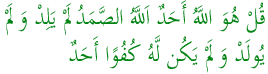 | 你说:他是真主,是独一的主,真主是万物所仰赖的,他没有生产,也没有被生产,没有任何物可以做他的匹敌。 |